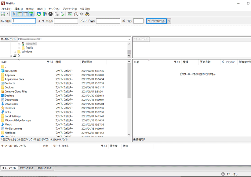 ※FileZillaのバージョンの違いで、解説画像に差異が生じる可能性がございます。
